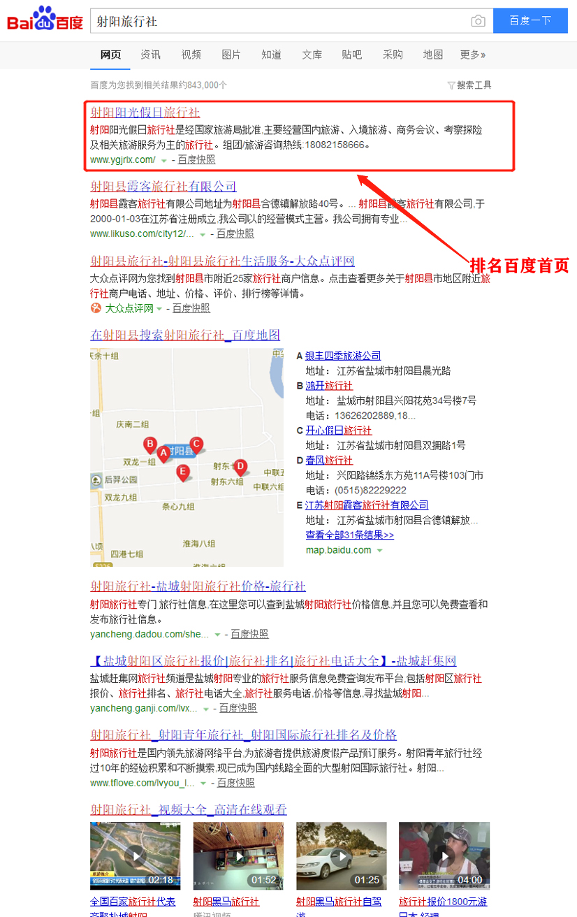 “射陽旅行社”網站優化效果顯著